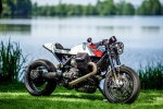 Fugitive Neuaufbau. Top Ausstattung mit Behringer Bremsanlage, 1400 ccm 130PS 145NM, Speichenräder, Wilbers Federbeine. Eigenbauschwinge mit Drehmomentabstützung, CNC gefräste Gabelbrücke, Radnaben, Fussrastanlage und vieles mehr. Minimalelektrik .