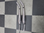 Die Anlage besteht aus 2 Stück Titan Krümmern 45mm , 1 Stück Titan H-Rohr (schwimmend und dadurch in der Breite verstellbar) , 2 Stück Titan Megaphone Auspufftüten, 2 Stück Titan Zubringerrohrbögen von H-Rohr zu Dämpfern,
